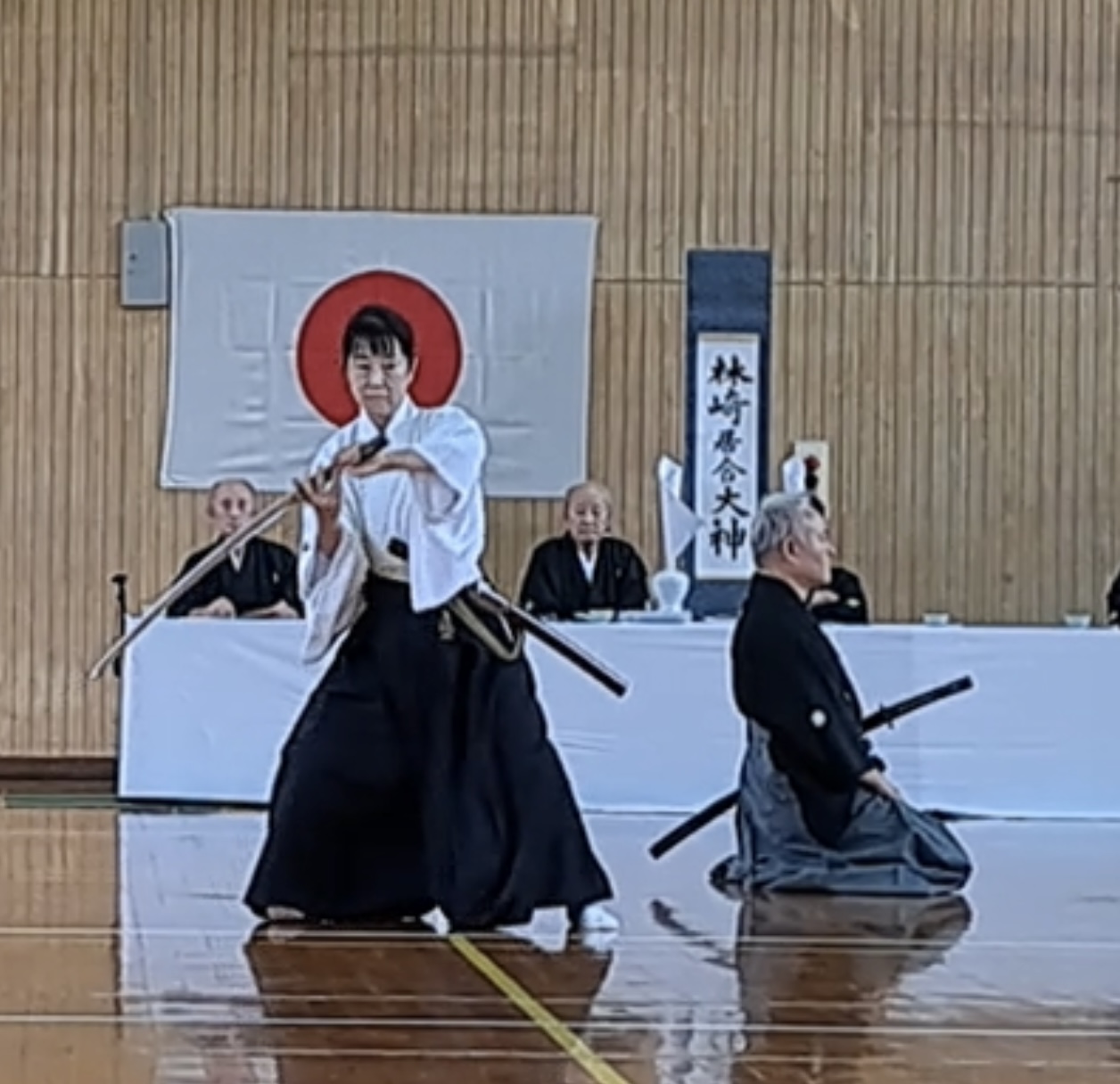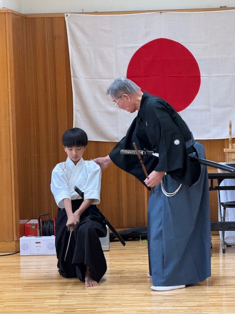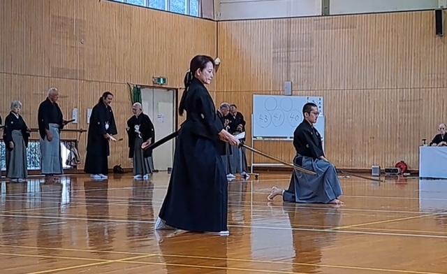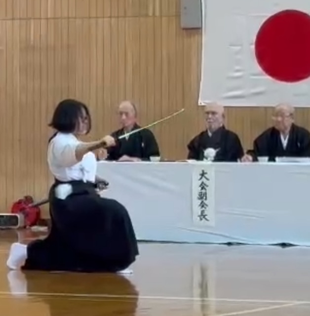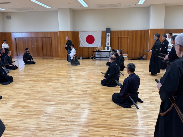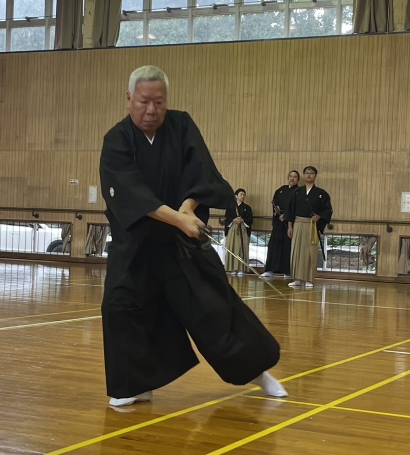 | 2025/11/25 昨日は無雙直傳英信流講習会・昇段審査会だった 枚方市の総合体育館に集まった近畿各地からの受講者が 第23代福井宗家と第24代池田宗家に習い、各技の基本を学ぶ とても大事な機会である。 同時に、無雙直傳英信流の段位審査のある日でもある。 ![]() 写真のように受講時は両先生の周りに集まり、24代の動きを23代が意味・意義を 説明しながら講習は進む。時折、周りの生徒を個別に指導するのですが、 我が弟子、奏人(かなと)君が選ばれて細かく指導頂いた。 ![]() こりゃあ嬉しい限りだ。僕の弟子達、この流れの中で3人が呼ばれ 声をかけて頂いた。嬉しい限りだ。 その日は昇段審査会があり、奏人くん壇ちゃんアレンさんと3人が 昇段され、初段となった。 森川くん泉さんは共に5段になり、私は準藩士に昇段した。 2025/11/10 昔から「本屋」が大好きで、暇な問はいつでも本屋へ 行っていた私だが、2020年に両眼を白内障で手術をしてからやはり、本を読む のが辛くなった。やはり「読書専用メガネ」が必要だなあ。 最近は「キンドル」でアマゾンの本を買う。画面が明るく、見やすいので助かる。 久々に本屋へ行った。 ![]() 昔は近鉄奈良駅近くの周辺にはたくさん本屋があったが、今では「小西町」 に1軒だけ、JR奈良駅にも有ったが今はもうありません。だから写真の 大安寺店と近鉄駅前だけ。さみしいコッチャ。 今日はコノ本を探しに・・・ ![]() 嫁はんを畑に送って行ってしばらくしてお迎えに行くのだが、その間に本を 探しに・・・ 畑の付近の散歩している方にもらった「アケビ」・美味しい。 ![]() 畑に咲くコスモス ![]() 今日は嫁が調子良いので連れてきた。畑で日向ぼっこ ![]() 2025/11/04 昨日(文化の日)は橿原神宮奉納演武会でした。 毎年、奈良支部と橿原支部がホスト役で近畿から集まる剣士たちを招いて 近畿地区居合道連盟の恒例行事として行っています。 当日はけっこう寒く風の強い日でありましたが、朝8時30分には「正装にて 正式参拝、榊奉納 その後第2体育館にて演武会開催です。 我が英信館奈良支部からは風邪で1名・出張で1名・仕事で1名不参加で 私も入れて8名が参加 まずゼッケン1番無段の奏(かなと)くん ![]() 続いては 無断のアレンさん ![]() その後、二段の萌ちゃん ![]() 四段の二人、泉さんと森川くん このくらいになると格好いいね ![]() で、目見田さん七段 もう迫力も抜群 ![]() 続いて、私 斜刀の終刀 ![]() まあ、こんな出来ですな。 2025/10/06 第33回全国大会です。 全国から、腕に自信ありの選手たちが挑んできます。 我ら英信館奈良支部は(本館)のお手伝いもしますので、準備、設営と 忙しく走り回ります。今回この大会に参加出来たのは、審判系の役割を する私と、接待系の仕事をする目見田さんと泉さんの3人でした。 そんな役割を果たしながら自分の順番が来たら選手として出場しますが、 目見田さんは女子選手最高段位の七段において見事に準優勝銀メダル 獲得しました。おめでとう。 素晴らしい笑顔です。 ![]() そして、泉さんですが、彼女も四段の部で準優勝銀メダル獲得です。 ![]() いやあスゴイね、彼女は昨年も三段金メダル獲得してますから・・・ 努力を怠らずやればできるのです。 二十三代ご宗家の演武を頂いて解散になります。全国の剣士のみなさんありがとう ございました。 2025/09/22 増えた剣士達を紹介します。 ![]() まず 神原さん 少し経験有りで、なかなかよろしい。 ![]() 中学二年生の徳川さん 剣道の経験アリで返事が良い。 ![]() 中学1年生の宮川くん、体も技も成長期だ、ぐんぐん行こう。 2025/09/01 今月から試合の練習生が増えた 先日の土曜日の稽古、今回はまず目見田さんの七段允可状の贈呈式から 始めました。 で、ですね、彼女に前立ちをお願いして二段、三段各一名、四段二名、の稽古をお願い しました。 ![]() ![]() ![]() 奥で新入の会員を教えてもらっているのが阪木くんで、二人の片方は中学2年女子 です。この子、小学生の時剣道を習っていたそうで、とても礼が良い。きっと良い先生 についていたと思う。この子の母が九州で太田先生に習っていたそうでその道具衣装 をそのまま娘に渡したようでぴったりだ。隣の若者(青年)は少し経験があるそうで 抜刀法は一応できる。職業は「声優」だと。いいね。ハキハキしていて気持ち良い。 今週の土曜日からもう1名男子中学生が増える。こちらも将来活躍してくれそうで とても期待しています。 まずは所作から始めますが、技に進めるか?稽古の意味が伝わるか? 礼を大切にできるか?・・・・真髄に近づくのは15年ぐらいかかるかなぁ。 2025/08/18 時間が空きすぎたが・・・ 家の用事や様々な所用が有って重要な講習会を欠席しなくちゃならなかった 事は有りましたが、参加したうちのメンバーが嬉しい物を持ち帰りして くれました。5月の全国大会で昇段した私の允可状が届きました。 ![]() 流派(無双直伝英信流)の八段はすでに5年前に頂いていましたが、連盟の 八段はいろんな下の段位の経験